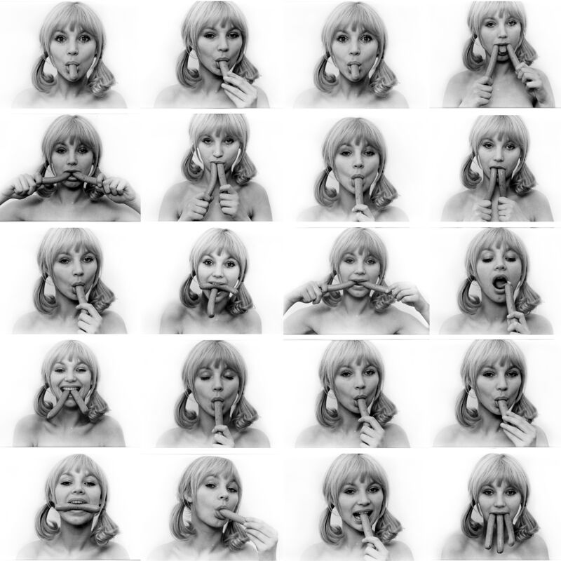 Natalia Lach-Lachowicz polska artystka intermedialna konceptualistka. Painting is a mature professional and conscious realisation whereas photography and drawing are notations of the first conception an idea not quite conscious A photographical documentation of performance she supplemented with drawings. With her series of pictures of young women eating bananas sausages or ice cream with relish she created iconic feminist images.